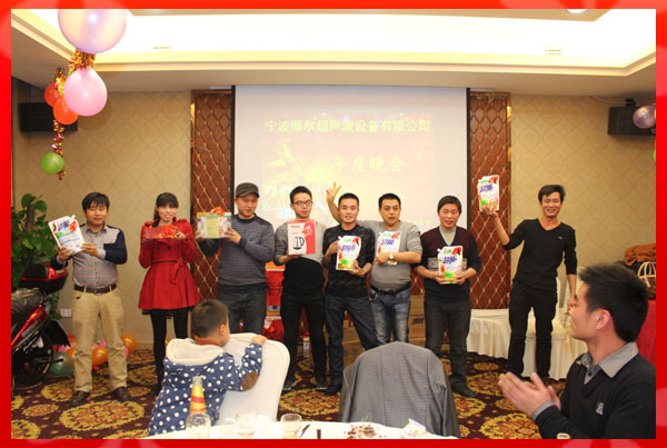 此次年會由公司行政部門精心策劃,聘請了專業(yè)的主持和音控團隊。公司員工精心布置了會場、安排各游戲互動環(huán)節(jié),財務(wù)部購置了豐盛的獎品;使得寧波博爾超聲波設(shè)備有限公司2013年年度晚會舉辦的成功、歡樂、祥和、圓滿!