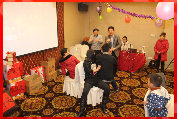 會議部分在張總和員工代表的歌聲中結(jié)束,會議結(jié)束后酒店安排了豐盛的晚宴。在晚宴中穿插了多項游戲互動,接下來的抽獎環(huán)節(jié)使年會氣氛達到了高潮。宴會結(jié)束后在主持人的引導(dǎo)下公司全體與會員工和家屬手拉手唱響了《明天會更好》以祝愿自己、家人和公司的明天更加美好!!!
